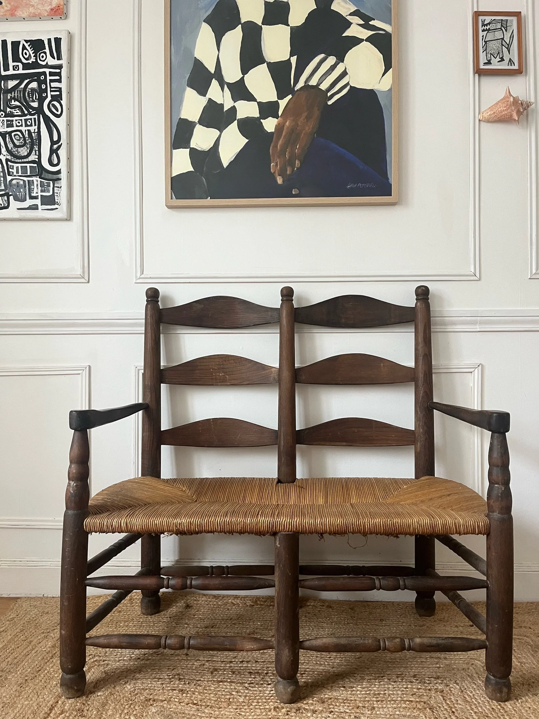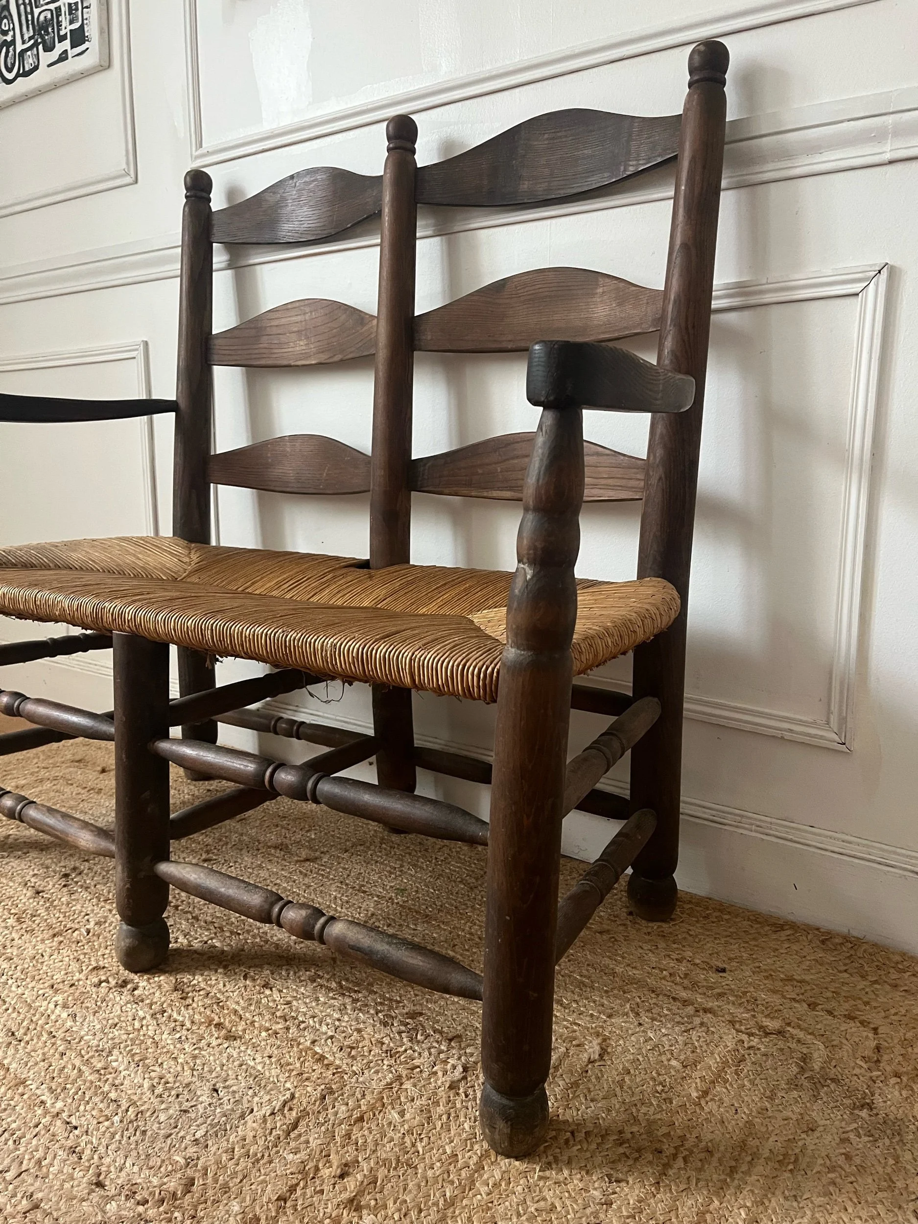 Banquette bois et paille rustique dans le goût de Charles DUDOUYT