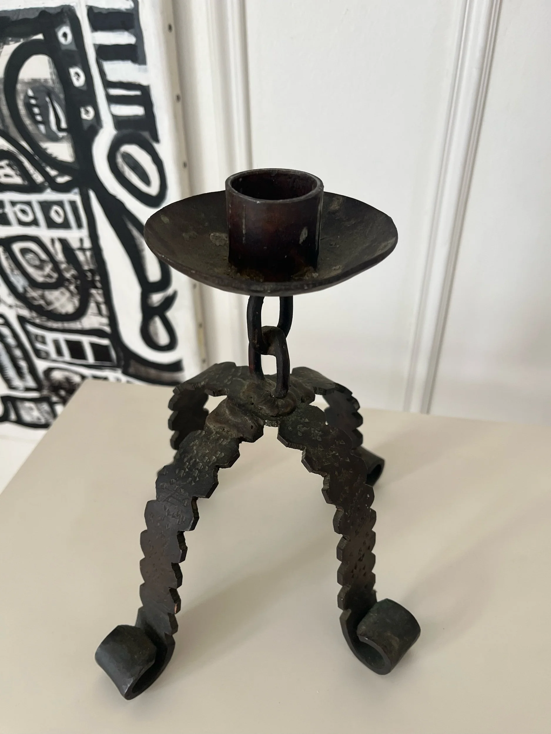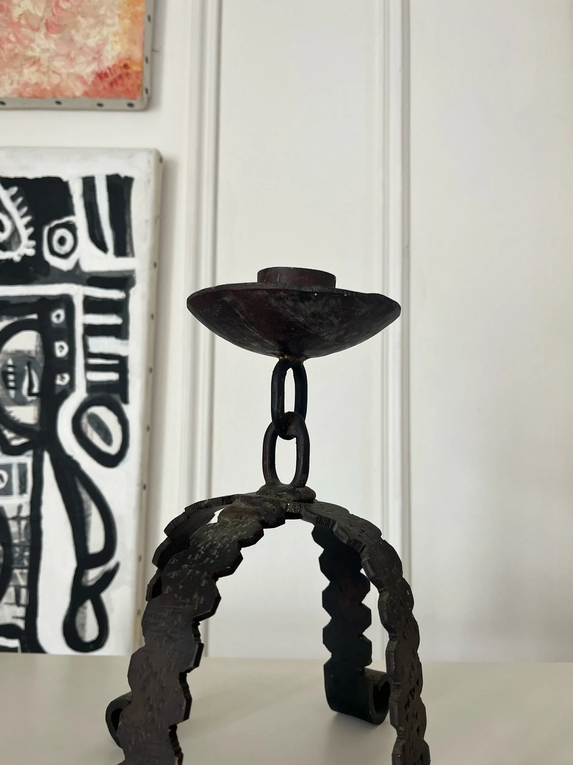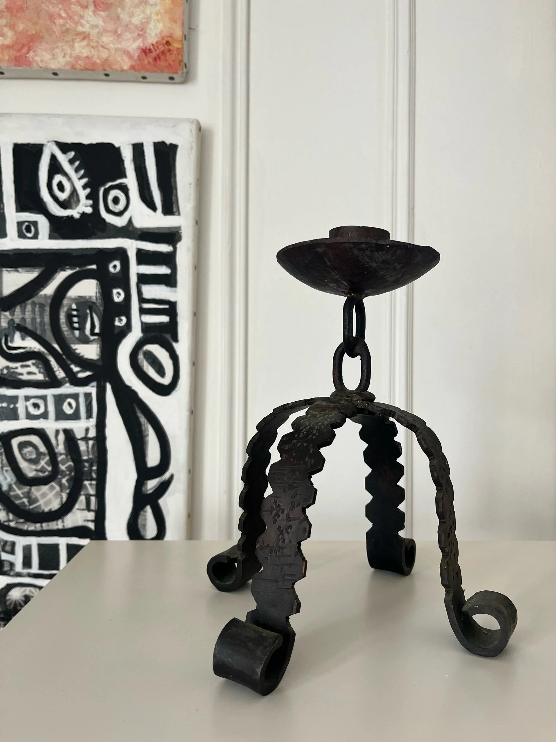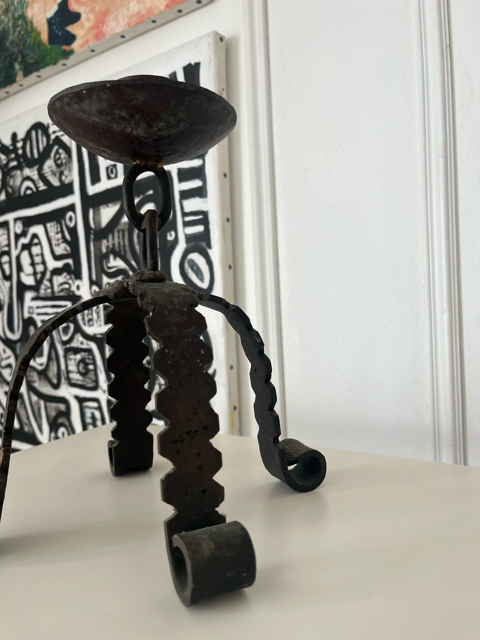 Bougeoir brutaliste en fer Art populaire
