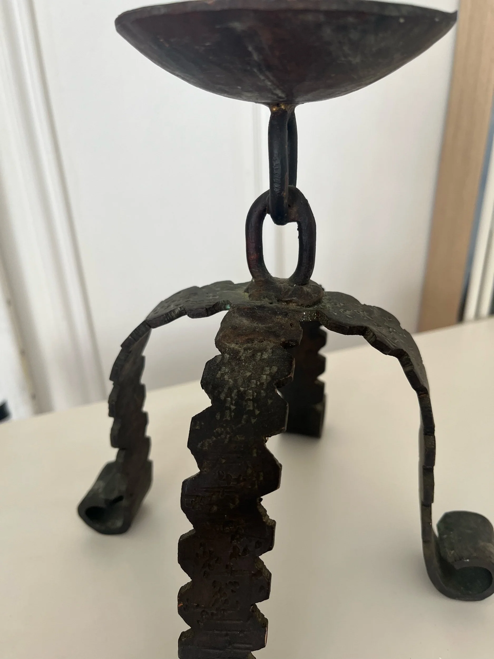 Bougeoir brutaliste en fer forgé artisanal