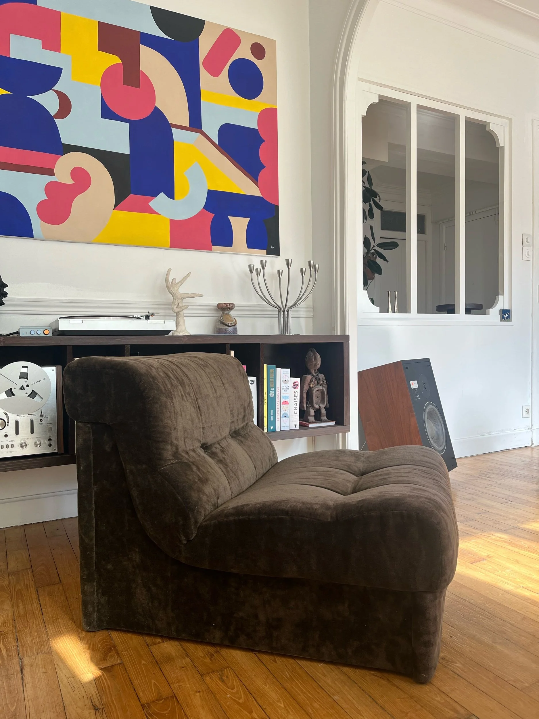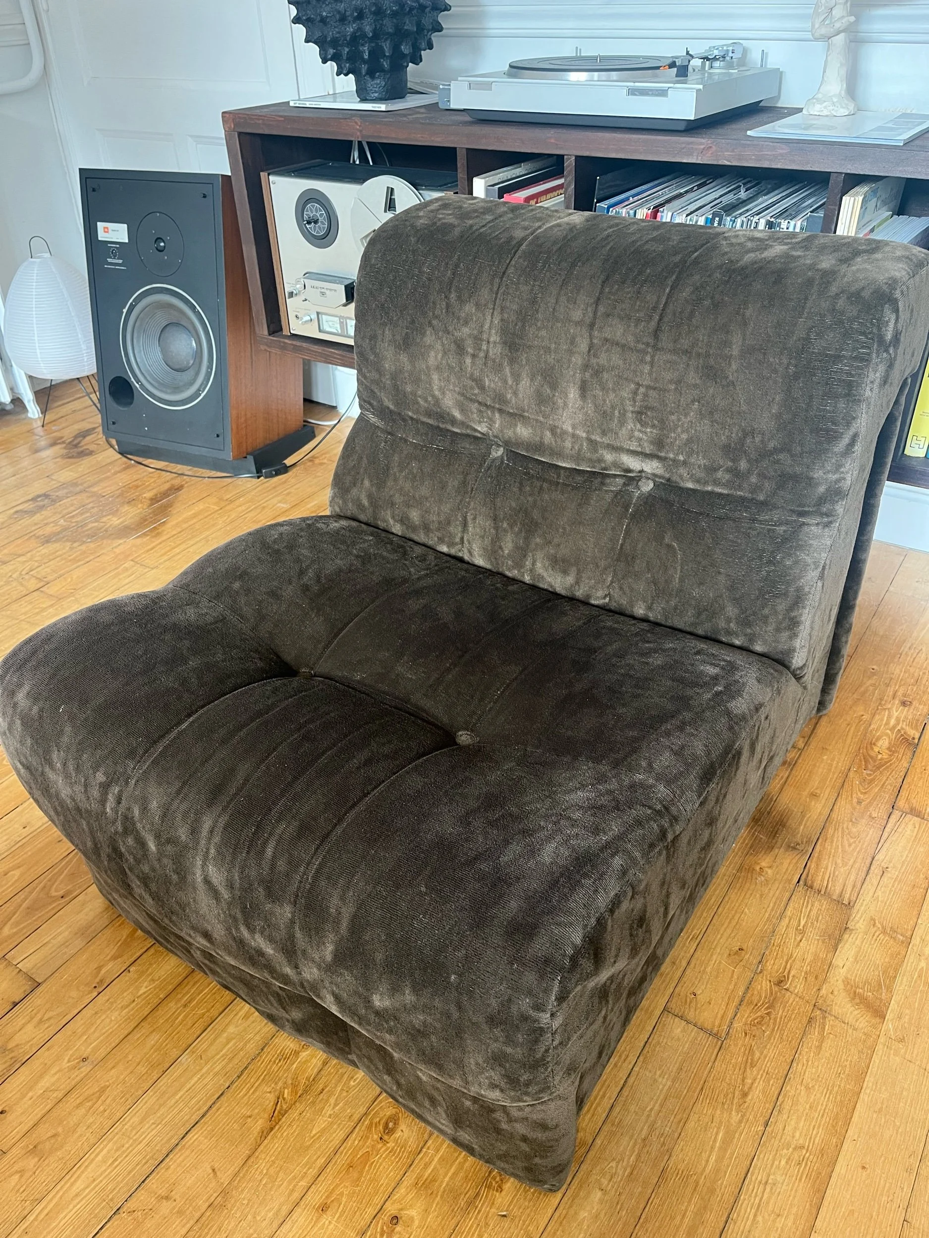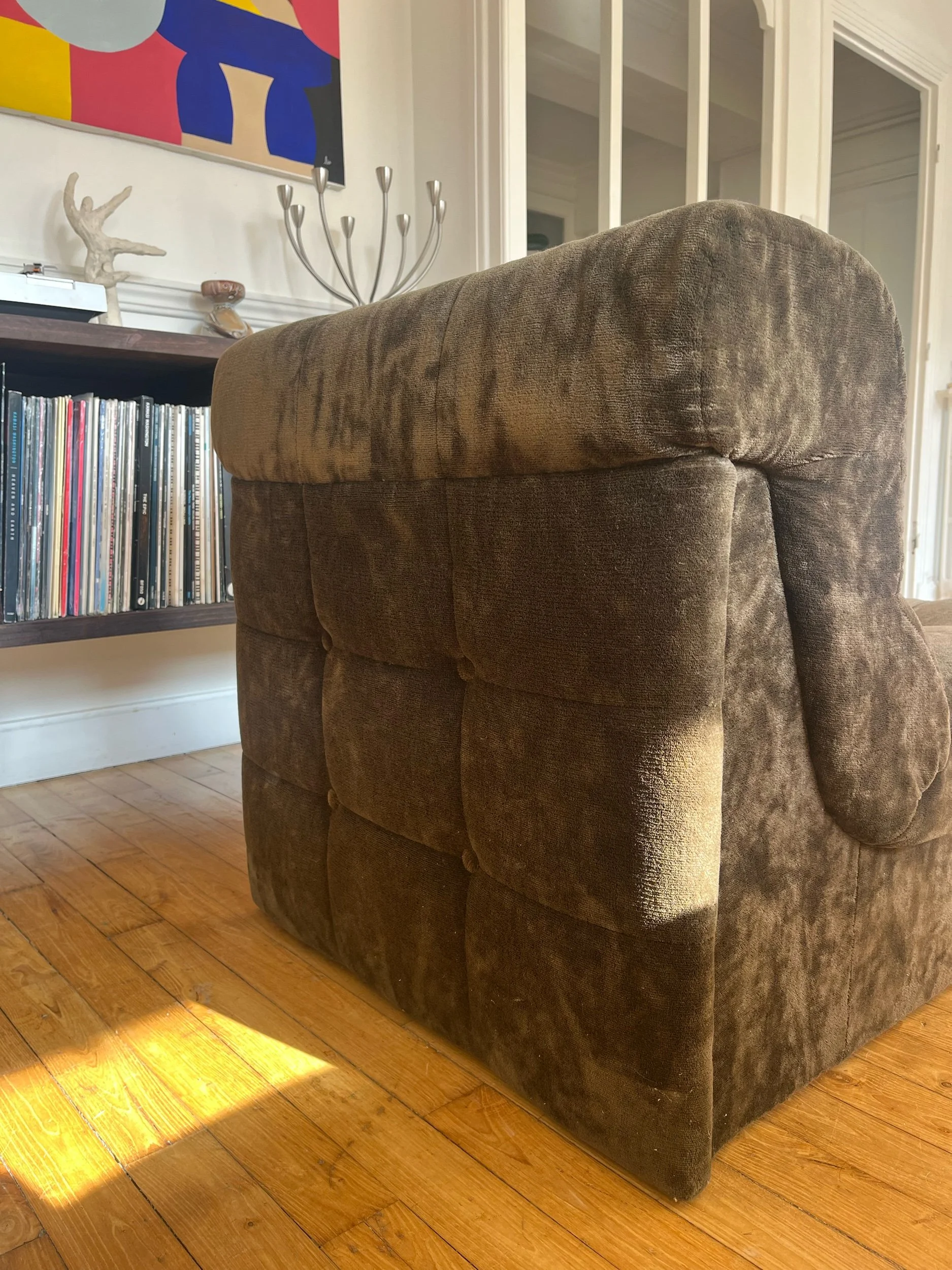 Chauffeuse en velours marron années 70